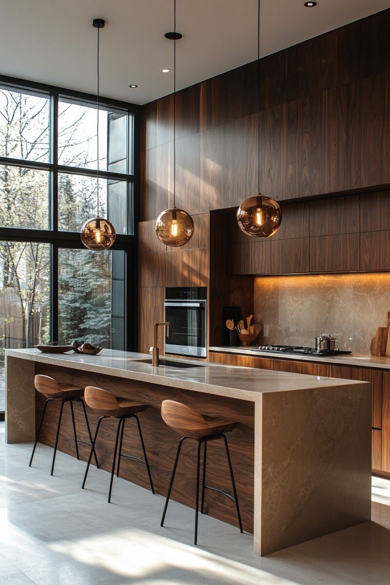 Cette saison, on le retrouve en cuisine, où il incarne le chic élégant par excellence : façades en noyer, plans de travail sombres, touches dorées ou mates pour sublimer l’ensemble.